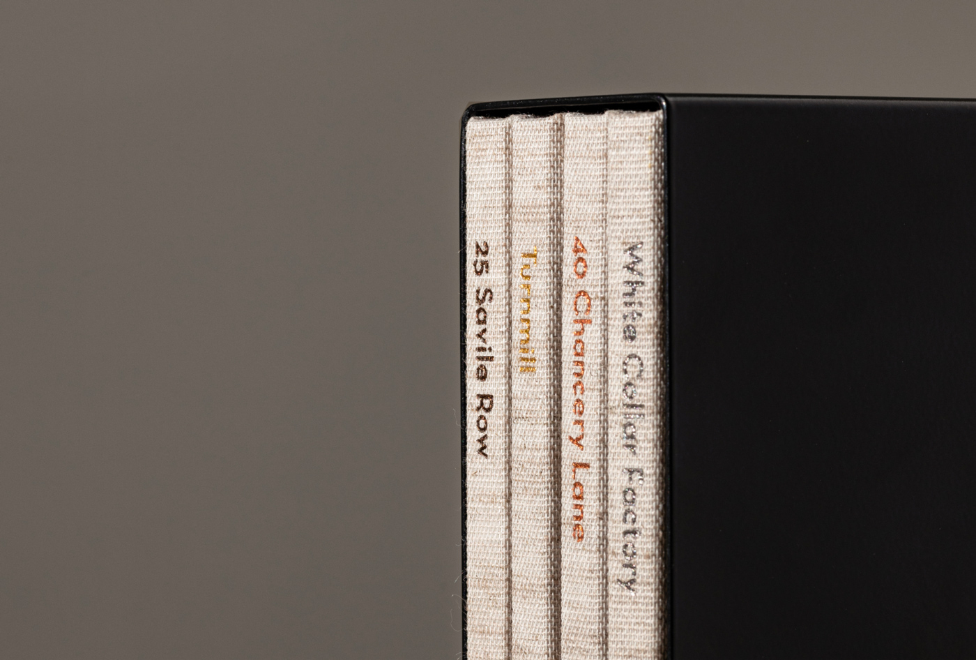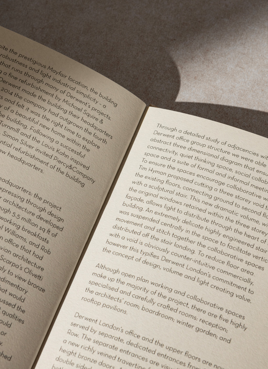 The initial set of four books was housed in a bespoke metal case and sent to important partners and investors across the industry. Following its success, the series has expanded into an on-going documentation of Derwent London’s work, with the aim to build up an ever-expanding library of books for open reference.