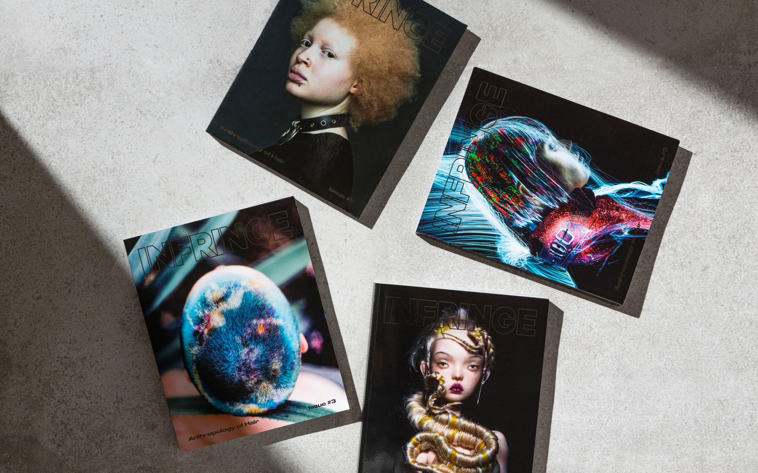 Infringe magazine is the brainchild of Antony and Pat Mascolo, founders of Toni & Guy. The magazine is a visual feast of art, design, and fashion all based around the exploration of hair culture. From the hairdressers, barbers and wigmakers using it as a medium for their craft, the photographers capturing hair culture across the globe, and the artists and activists challenging perceptions of hair and its role in shaping our sense of identity. INFRINGE is the Anthropology of Hair.