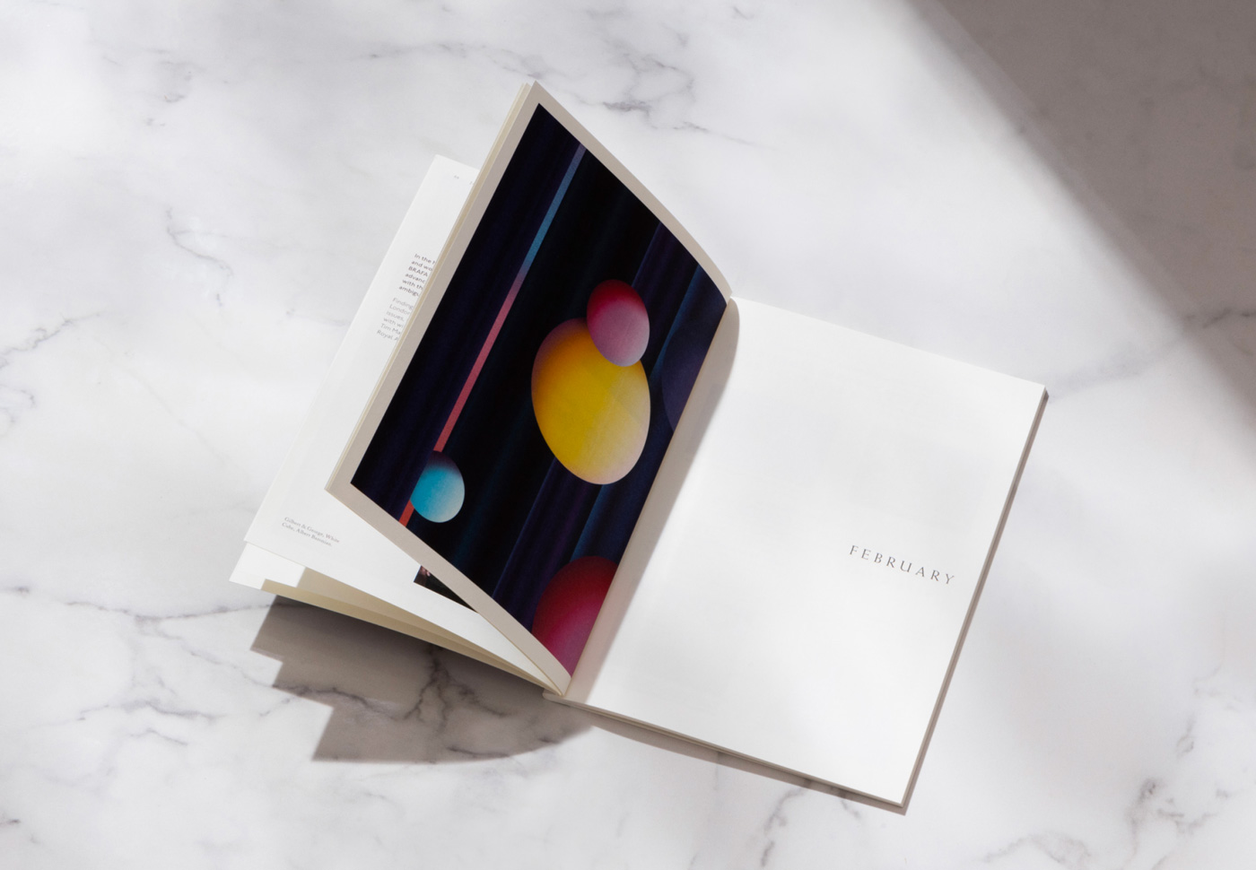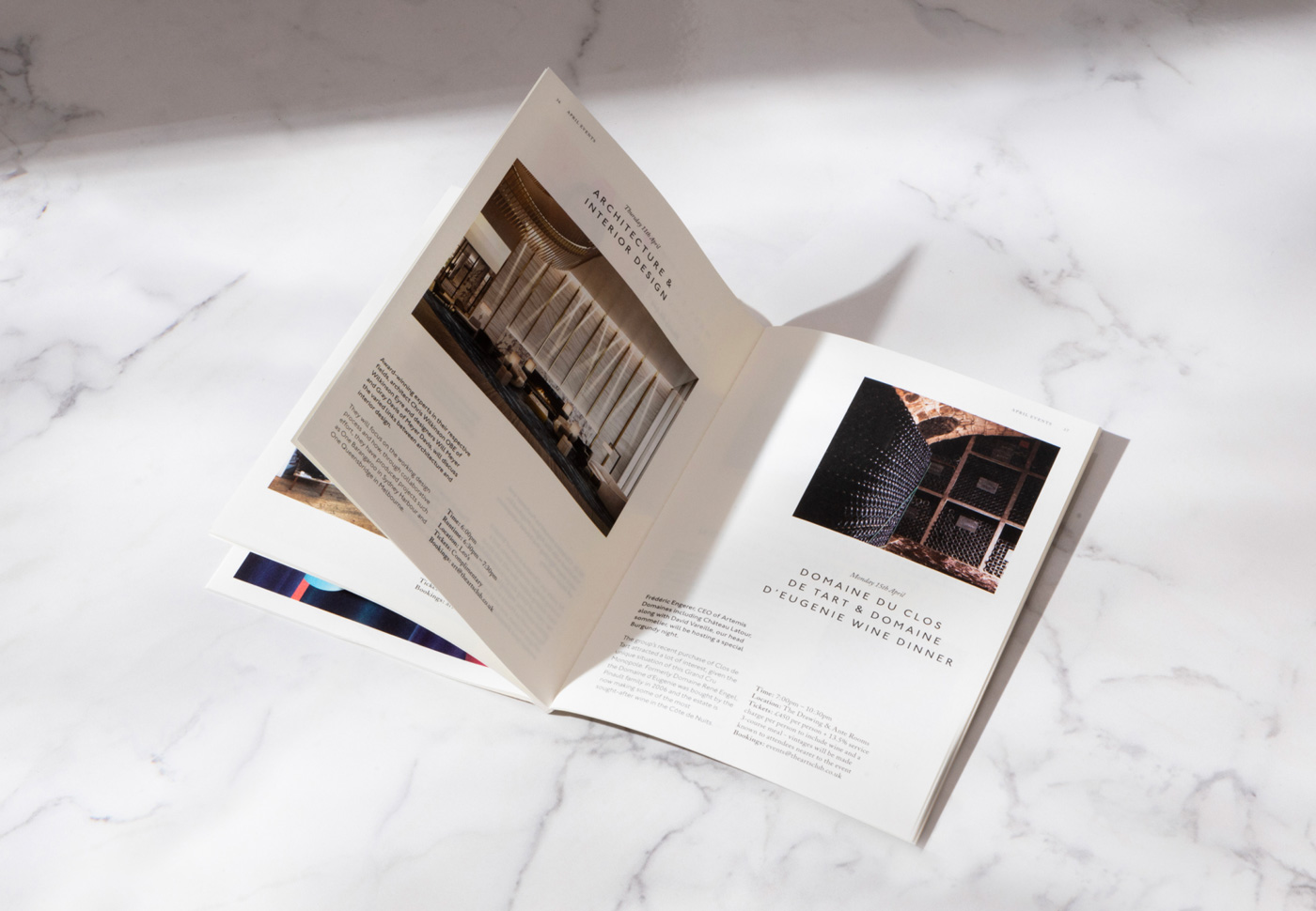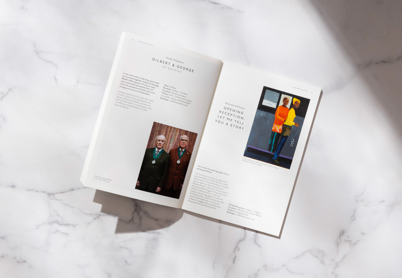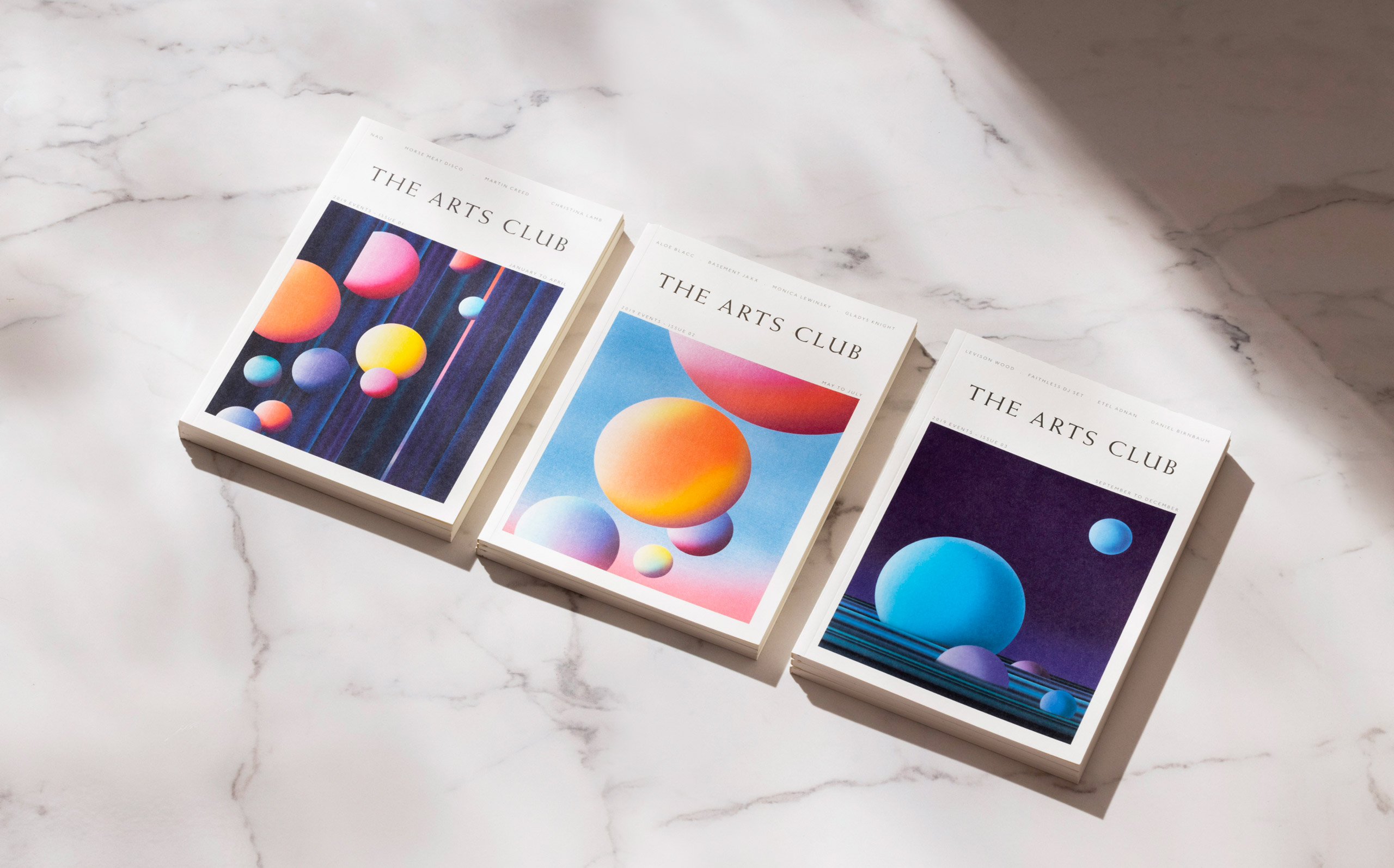 The members events guide are issued three times per year, with a revolving annual theme that we brought to life with varied, abstract, artful cover art. Shown here, the work of Merijn Hos.
