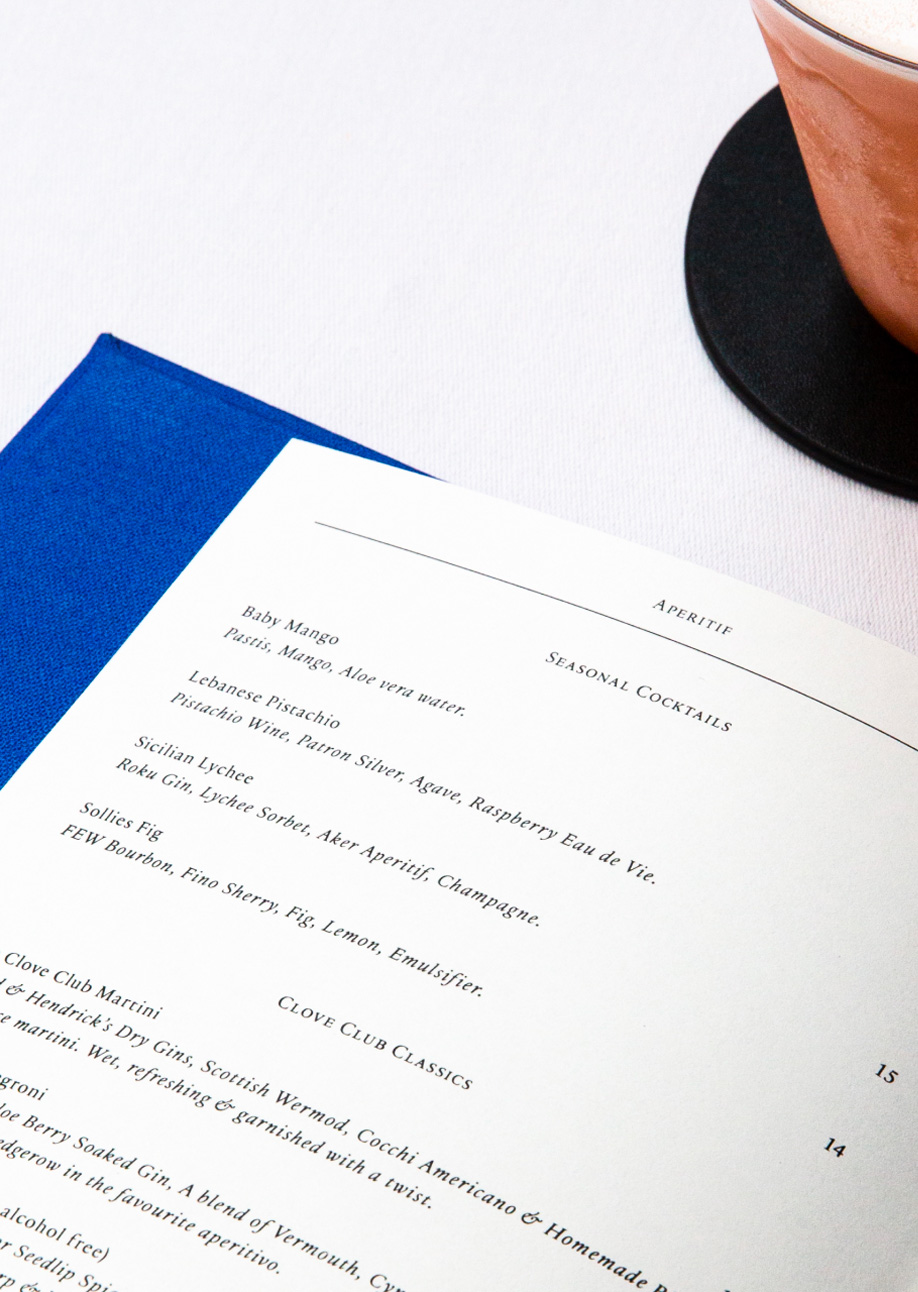 Having worked with the team on their sister restaurant, Luca, we were asked to rebrand their higher-end offering, The Clove Club. Already Michelin-starred when we started working with them (and since awarded a second star), The Clove Club is an elevated dining experience where attention is paid to every single detail of the guest experience, both on and off the plate.
